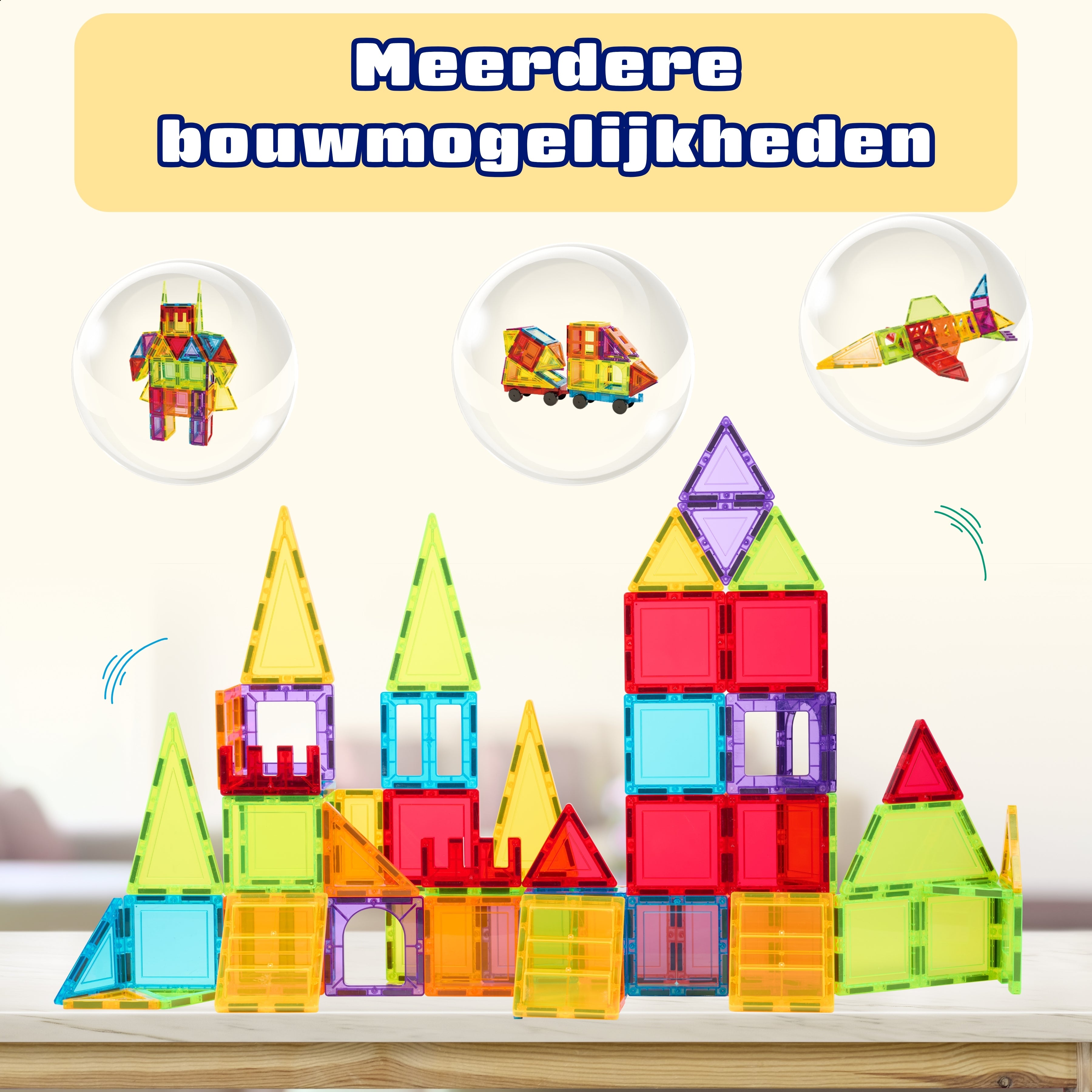 Magnetbausteine ​​sind farbenfrohe Bausteine ​​mit starken Magneten an den Kanten. Kinder können die Bausteine ​​einfach zusammenklicken und so 2D- und 3D-Modelle bauen. Dank ihrer robusten Konstruktion bleiben die Bauwerke stabil und laden zum grenzenlosen Experimentieren ein.